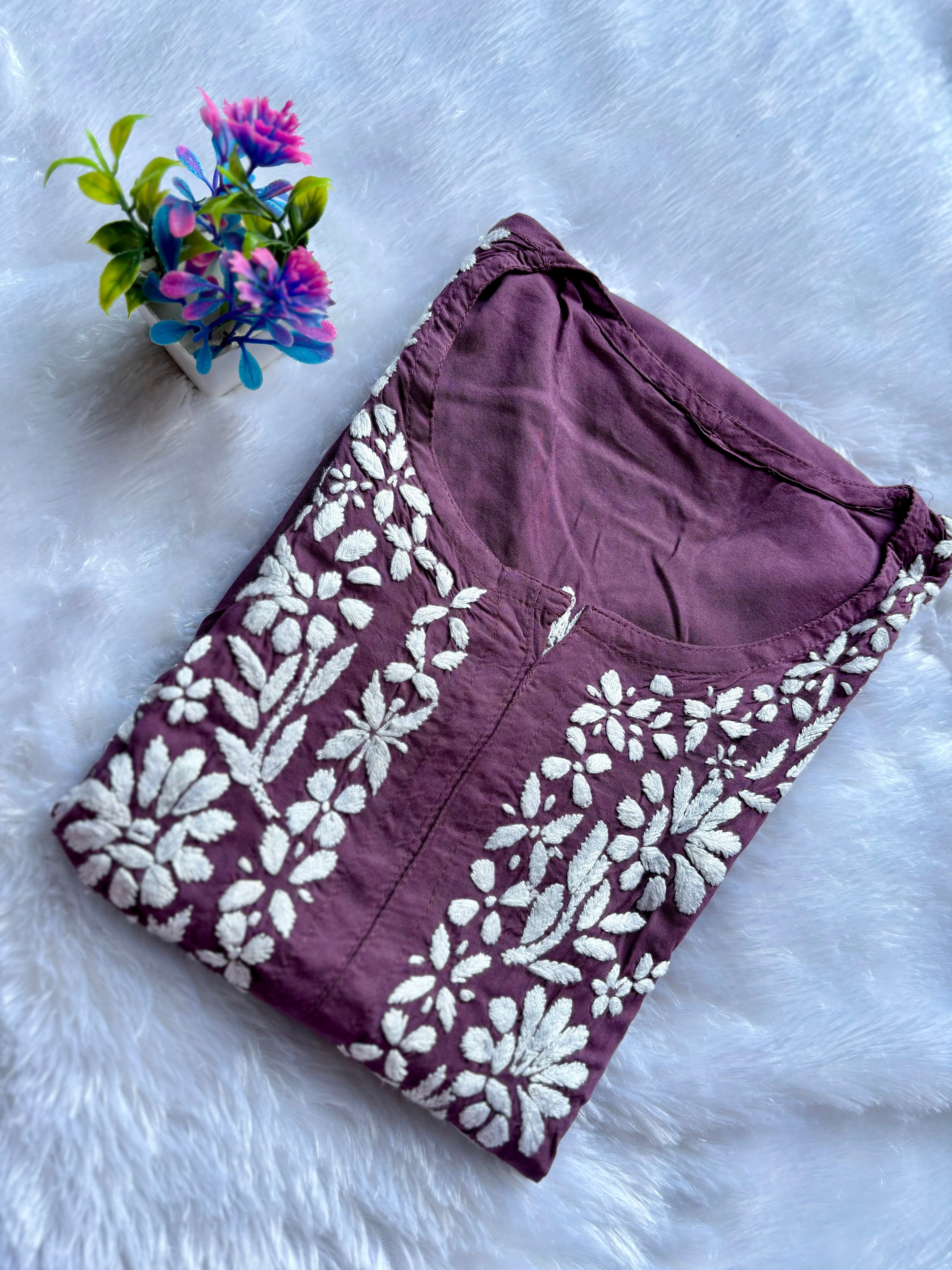 Tehzeeb-Modal Long Kurtis-Dark Mauve