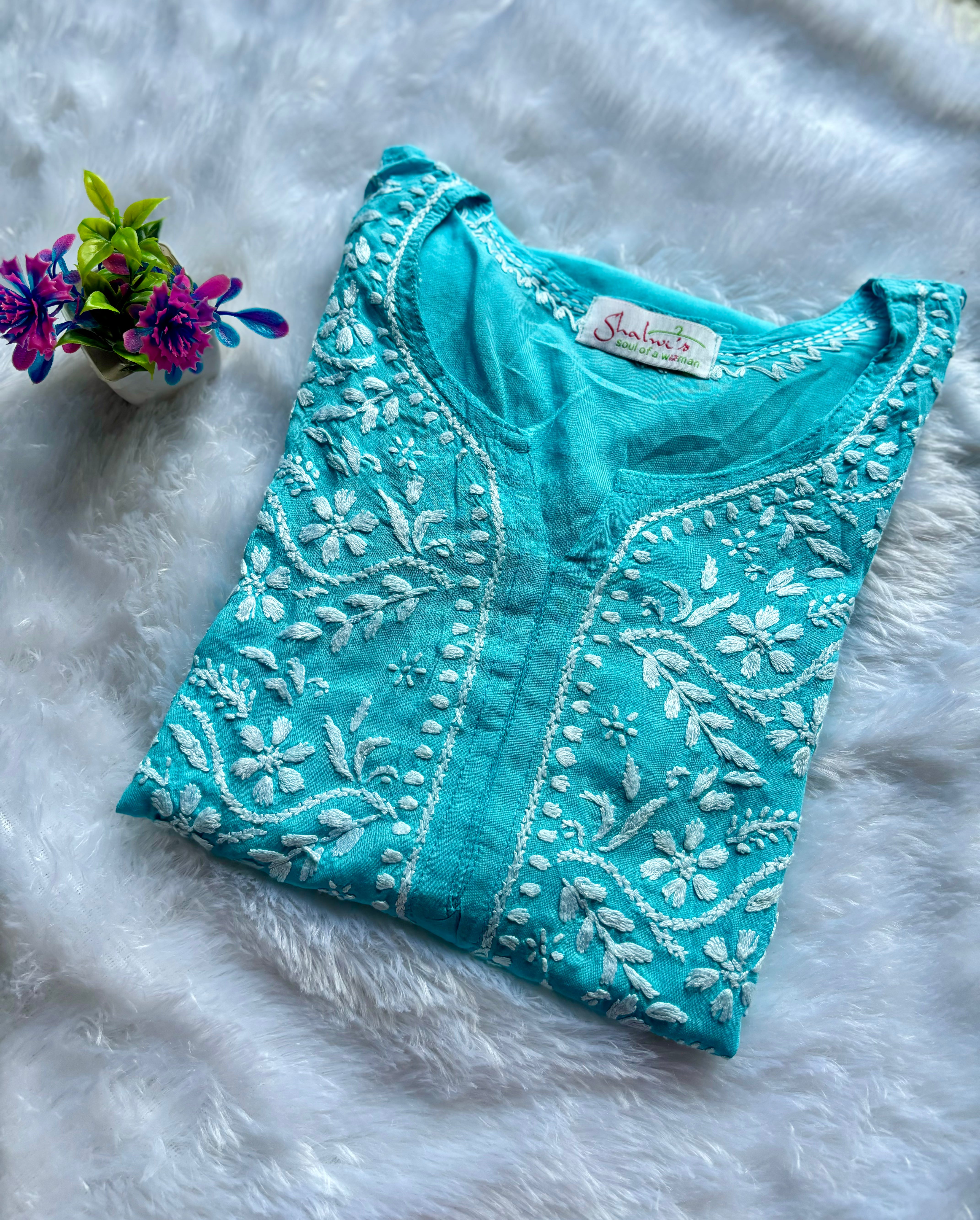The intricate Chikankari hand work on it enhances the beauty of the Kurti.