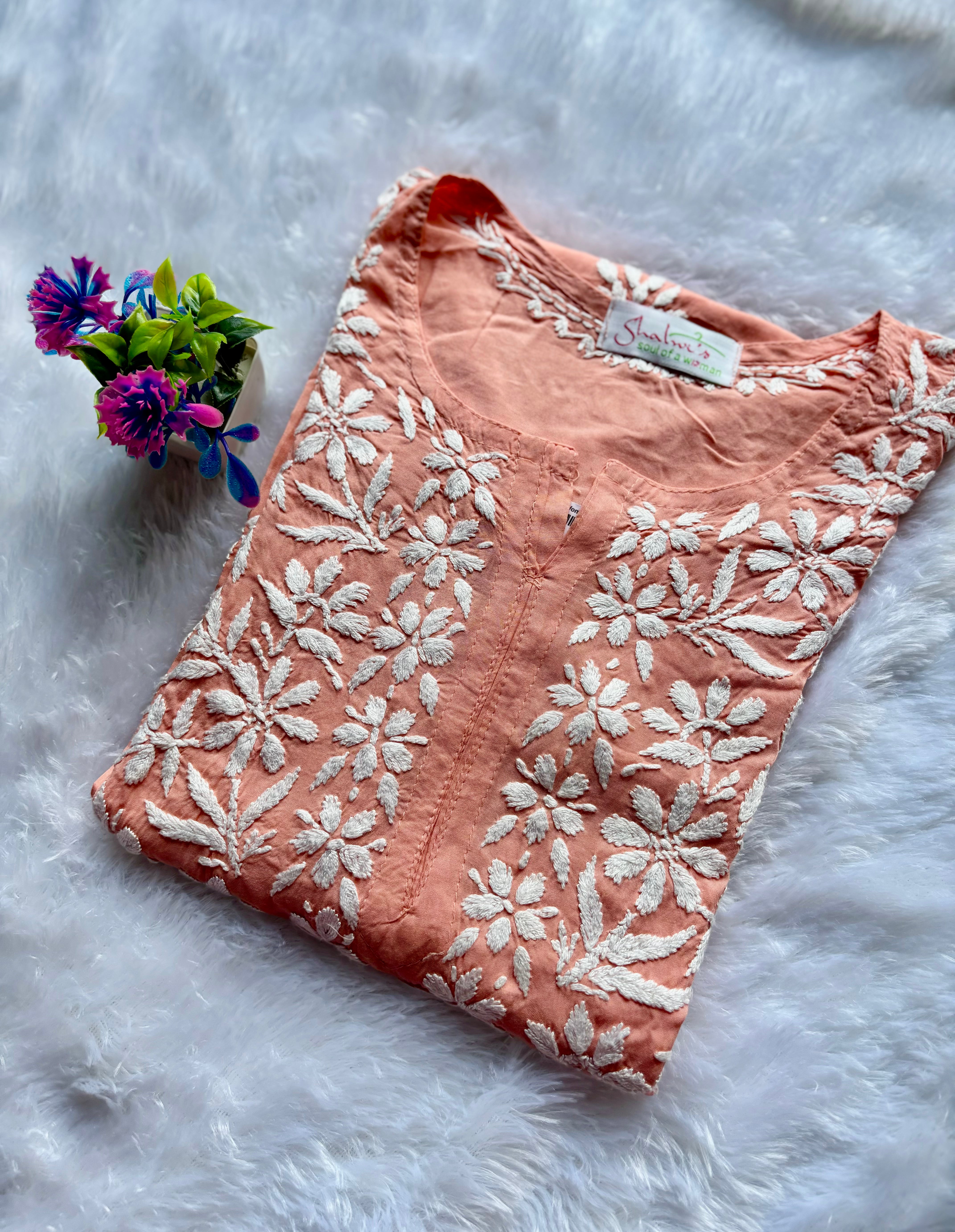 Tehzeeb - Modal Straight Kurti - Peach