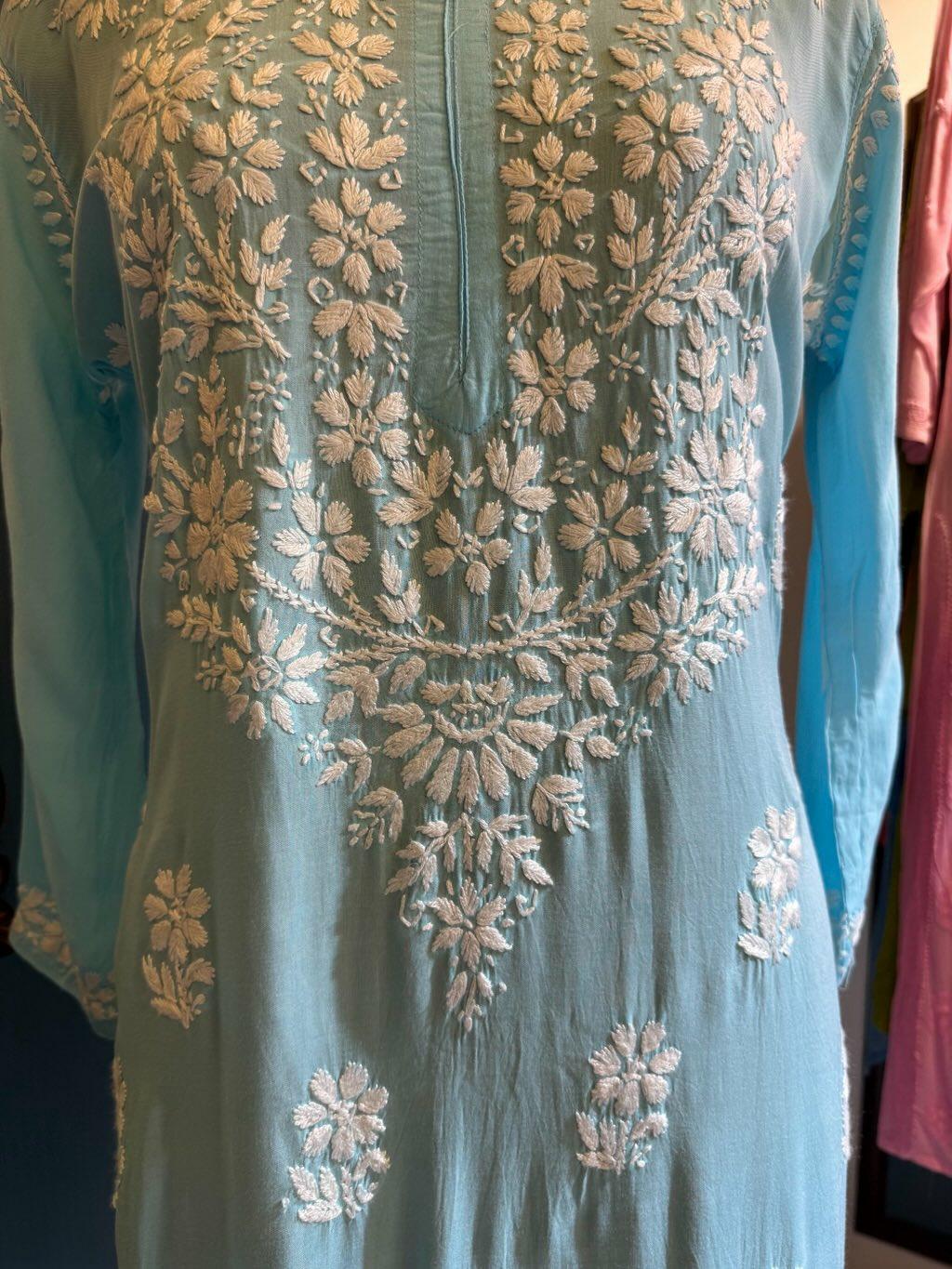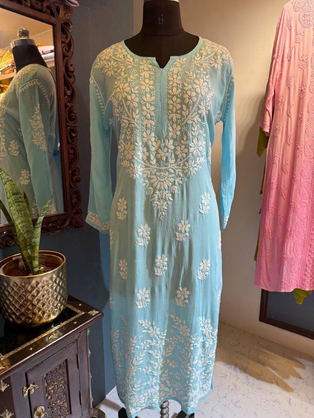 This light blue Modal long kurti blends comfort with style effortlessly. Crafted from soft, breathable Modal fabric, it offers a gentle touch against your skin, perfect for all-day wear. Its flowing design adds a playful charm to your wardrobe, making it an ideal choice for casual outings or relaxed gatherings. Embrace a splash of color and cozy elegance with this delightful kurti.