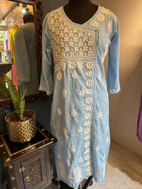ool, calming, and effortlessly elegant — Neelori is a refreshing sky blue Angrakha-style kurta crafted from soft, breathable slub cotton, and elevated with intricate white 3D thread embroidery that adds handcrafted charm to your everyday ethnic wear.