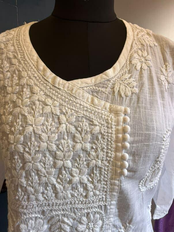 This timeless silhouette wraps effortlessly around the body, offering a flattering fit that suits all shapes. The breathable slub cotton fabric makes it ideal for long days, festive mornings, or elegant office wear — blending comfort, charm, and culture in one signature piece.