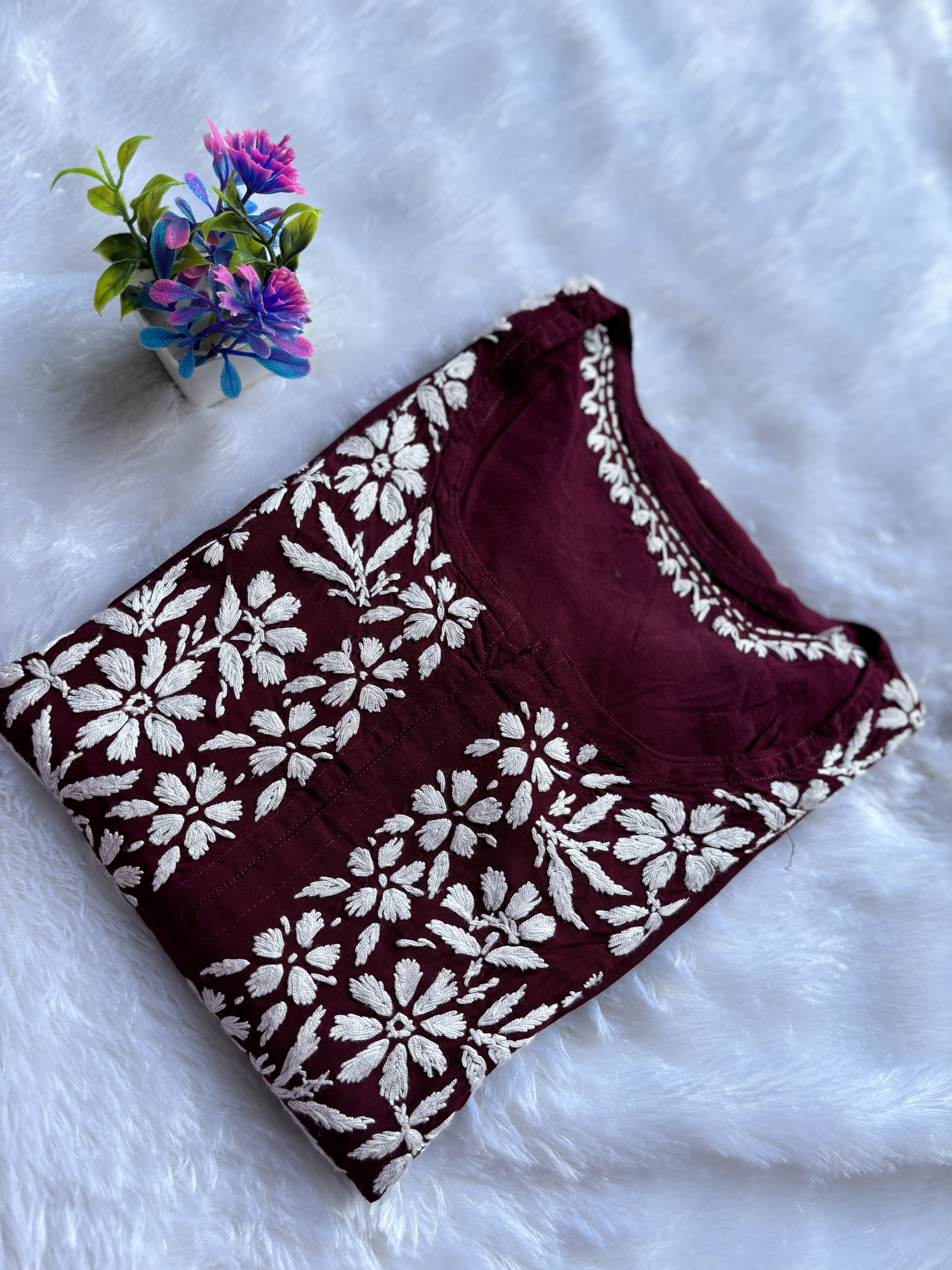 The intricate Chikankari hand work on it enhances the beauty of the Kurti.